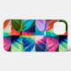 The original abstract artwork by ZoeSPEAK on this iPhone 13 Case began as Zoe’s original photograph of a leaf from a sea grape plant. The design explores the variety of colour combinations coming from the bright light and shadow areas of the smooth, almost oval shaped leaf, and the background. There are bright reds, pinks, lavenders, aqua and dark blues, orange and dark and light greens. The veins and stem of the leaf add dimension and colours.