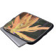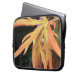 The artwork on this 10” Laptop Sleeve is an original closeup photograph by HomeWare of a leaf on a young coral plant. The plants have palmate leaves whose leaflets have notched edges. After a shift in colour, the leaf looks reddish gold. The flower pots have become purple, all against a dark brown and green background.