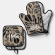 Leaf Tiki Black Hawaiian Tropical Oven Mitt & Pot Holder Set