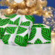 This wrapping paper has a Scandinavian design of leaf trios repeating across the design in three shades of green.