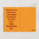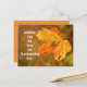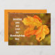 Pretty photo of an Autumn leaf with a tiny heart in it, is featured on this postcard for Thanksgiving Day. Front of the postcard reads, "Sending you my Love for Thanksgiving Day". The back of the postcard reads, "Though we are miles apart. I am keeping thoughts of you in my heart. Happy Thanksgiving Day". Great postcard to send to that special loved one when you can't spend Thanksgiving Day together!