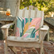 Leafy Abstract in Teal, Sage, Rose and Gold Outdoor Pillow