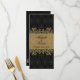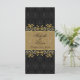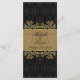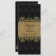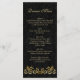 Leafy golden swirls, black damask pattern Wedding Menu Rack card.