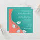 Leafy Vine Turquoise, Coral White Wedding Invitation