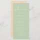 Ce programme de mariage est doté d'une police manuscrite pointue et d'un design minimaliste moderne avec une combinaison de couleurs vert pastel et jaune printanier. Modifiez facilement le libellé *most* à vos besoins et modifiez toutes les couleurs pour correspondre aux couleurs de votre événement.