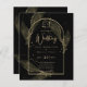 Voici un mariage de cravates noires doucement formel aux couleurs noir et or orné de délicats feuilles en squelette doré recouvrant les bordures d'un cadre voûté. Cette conception fait partie d'une collection de coordination et comprend des éléments tels que les cartes RSVP, enregistrer les dates, les invitations, les signes d'accueil, les autocollants, les serviettes, les programmes, les cartes de numéro de table, les sacs de faveur, les menus et les étiquettes de bouteilles de vin, ainsi qu'une variété de types de cartes et de papier pour convenir à tout budget. Ce design conviendra bien aux thèmes mariages suivants : mariages à thème Whimsical ou romantique, mariages à thème automne ou automne, mariages à thème jardin ou extérieur, mariages à thème rustique ou bohème, conte fée ou mariages à thème enchanté, mariages à thème Vintage ou shabby chic, mariage classique ou intemporel, mariage à thème élégant ou haut de gamme.
