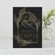 LeahG Black Gold Leaves Modern Wedding INVITE