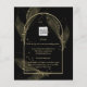 Voici un élément de mariage en tenue de soirée noire formelle et élégante avec des couleurs noires et or ornées de délicates feuilles de squelette dorées recouvrant les bordures d'un cadre arqué. Cette conception fait partie d'une collection coordonnée et comprend des articles tels que des cartes de réponse, des "save the date", des invitations, des pancartes de bienvenue, des autocollants, des serviettes, des programmes, des cartes de numéro de table, des sacs de faveur, des menus et des étiquettes de bouteille de vin, ainsi qu'une variété de types de cartes et de papiers pour s'adapter à tous les budgets.