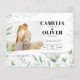 An elegant and modern wedding invitation that allows you to add a couples engagement photo. Features a leafy green overlay image. Perfect for greenery foliage themed weddings.. Typography fields both sides and a QR scanning code. ⭐This all-in-one wedding invitation includes text template fields on BOTH sides, allowing you to add your wedding ceremony, reception, RSVP, gift registry, and accommodation information without purchasing extra enclosures and stationery. This selection guarantees a high-quality budget alternative while both saving money and being ecologically responsible. Fewer sheets of paper equals less trash! You can use the TRANSFER tool to transfer this design to other goods or access Zazzle's FREE LIVE DESIGNER service via the options on your website for creative assistance. It's worth noting that you can include a QR scanning code with this invitation. If you don't need this, simply remove the image or replace it with a logo, graphic, monogram, or photo. Zazzle has many customization features to help you be creative and design your own wedding stationery. Our wedding invitations are appropriate for all seasons, including summer, spring, autumn, fall, and winter. They are great for weddings held outside, inside, on the beach, in a barn, in the countryside, on a mountain, in a lake, in the forest, or in the woods. ⭐Enjoy your wedding planning adventure, save and follow our store, and pin to your Pinterest boards. ⭐