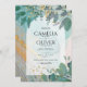LeahG Seaglass Ink Teal Gold Greenery Wedding Inv Invitation