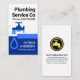 Cover features a leaking faucet design with a blue tab layer. Over at the top lies the business name and its contact details. Towards the base in the blue flood layer stands your prestigious name and job title.