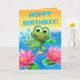 Leap Frog carte d'anniversaire personnalisée standard. Une de mes illustrations préférées. Cette petite grenouille sautante aime tellement les anniversaires et les fêtes qu'il saute tout droit de la photo. Idéal pour tous les objets de fête pour enfants, vous la trouverez sur des cartes, des invitations, des assiettes et divers vêtements pour enfants. Tous avec des âges et des noms personnalisables pour la fête sur mesure parfaite.
