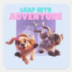 Dive headfirst into excitement with "Leap Into Adventure," a dynamic graphic from "Gracie & Pedro: Pets to the Rescue!" This vibrant image features the intrepid duo, Gracie and Pedro, in mid-air, exuding enthusiasm and bravery. With a backdrop highlighted by a soaring plane and a hint of whimsical clouds, this artwork perfectly captures the spirit of their high-flying escapades. The bold, playful text enhances the sense of motion and adventure, making this an ideal promotional piece for the movie, appealing especially to young audiences and families. Perfect for posters, digital banners, or social media, it embodies the fun and adventure that the film promises.