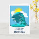 A mother dolphin and a baby dolphin leaping out of the ocean waves. Below and inside are text templates to add your own message.
