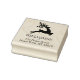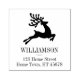 A personalized rubber stamp design featuring a leaping reindeer above your name and return address text below. Ideal for adding an extra hand stamped touch to your holiday cards.