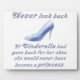Never look back. If Cinderella had gone back for her shoe, she would never have become a princess. Live every day to the fullest, and never look back; no matter how bad something may appear, there is no telling what good may come of it. You only live once, don't waste time on regrets! A lovely design with glass-like writing, and of course, the iconic Cinderella's glass slipper.