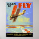 Restored and digitally enhanced reproduction of an advertising poster showing a biplane flying above Bridgeport Airport, Stratford, Connecticut. Imperfections removed. Colors corrected.