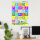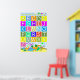 Learn your ABC With Dinosaurs Reading Letters Poster. Learning your ABC is fun with this cute cartoon dinosaurs ABC chart from letters A to Z with different colourful dinosaurs like Diploducus, T-Rex, Triceratops, Stegosaurus, flying Pteranodon and Parasaurolophus in a happy colourful pre-histic world with palm trees, mountains and a vulcano with colour stars poster print with customizable text "Learn your ABC with dinosaurs!". This great dinosaurs ABC alphabet poster is fully customizable, add your texts and images! A great letters learning chart for the big little dinosaur fans!