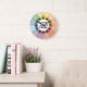 This clock designed by a 6-year-old makes learning to tell time easier! Indispensable for teaching time and simple scheduling. "We're having lunch when the small hand reaches the cat." "You have school from purple to orange." 🕒 Hours are in circles and line up with the point of the hour hand. 🕒 Minutes are in squares and line up with the point of the minute hand. 🕒 Each hour is represented by a different high-contrast colour (tested to be colorblind-friendly). 😺 Each hour also has a cute animal face! This clock can be customized with your child's photo, and includes dots for individual minutes.
