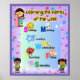 Get ready for school! It's time to learn the days of the week in a fun and engaging way. This colourful print features beautiful images and represents each day with a specific animal, fruit, or planet corresponding to the first letter. The vibrant design, with its purple background, stars, and cute kids, is perfect for classrooms, homeschooling, daycare centres, pediatric or dentist offices, and even as wall art in a kid's bedroom. Reading it every night before bed can help kids learn at home too. Consider gifting this poster to support your child's teacher with classroom decorations. Make learning exciting for children—get this poster today!