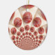 The artwork showcases a central cluster of red cricket balls that radiates outwards in a concentric, spiralling fashion. The balls vary in size, suggesting depth and perspective. The background is a soft, textured off-white, providing a subtle contrast that highlights the rich red of the cricket balls. The overall effect is visually engaging and creates a sense of organized yet dynamic movement.
