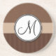 Leather Brown Damask with Stripes and Monogram Coaster