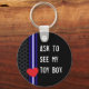 Display your leather pride with this fun keychain. Showing the leather pride flag colours this key fob says "Ask to see my toy box" and can be customized to say anything you want. Makes a great gift for a fellow leatherman, sir, daddy, boy or ma'am or girl.