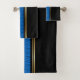 Un côté de ces serviettes élégantes est noir de jais solide et l'autre côté est une mer des ondulations, avec une rayure de frontière d'or entre ! Cet ensemble distinctif de serviette ajoutera la couleur et le style délicieux à votre décor de bain ! Une grande manière de commencer votre jour dans le style !