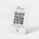 Leave us a review Simple QR code Pedestal Sign. Simple Minimalist professional pedestal sign on white and black. The Leave us a review template has space for basic information like the logo, QR Code, and additional text to promote your business. With a single scan, your customers can leave a review the perfect way to promote your business and enhance your business. Click on "personalize this template" for product customization.