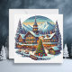 Hyper realistic picture of Leavenworth, Washington all decorated for Christmas holiday card. Pretty architecture, mountains and Christmas tree decorations.