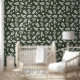 Leaves and Berries Pattern - Dk Green | White Wallpaper