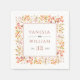Arch with berries and leaves border terracotta fall all in one wedding paper napkin. This lovely design features an a square frame made of berries and leaves, the names in terracotta clay colour and the date of your wedding.