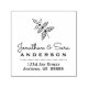 This self inking return address stamp features an illustration of a branch with leaves and hand written style text.