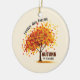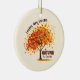 Welcome the beauty of fall with this "Leaves Are Falling, Autumn Is Calling" ornament featuring a charming tree adorned with vibrant orange and yellow leaves. Perfect for autumn lovers, cozy season enthusiasts, and anyone who enjoys the crisp air and changing foliage. This warm and rustic fall-themed design is ideal to celebrate the magic of autumn.