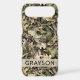 Customize this leaves camouflage iPhone 17 air case with your name in a trendy modern CAP font in brown on opaque cream. It's masculine and perfect for your favorite military, hunting, country or outdoorsman!