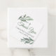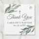 Baptism favour tags featuring a green and grey colour theme and watercolor greenery.