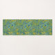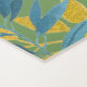 Beautiful pattern features branches of leaves in blues and golds on green background, complimenting a variety of home decor themes from mid-century to modern.