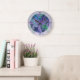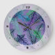 Plants leaves pattern, purple background , botanical wall clock.