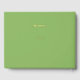Give this beautiful guest book that has a photo of leaves spelling the word 'LEAVE' on a glass table top. The reflections of the light coming through the blinds also reflected off the table only enhance the idea of contemplation. It has a green background with words in gold foil. What a wonderful keepsake for all the celebratory messages and insights that friends and family leave.