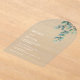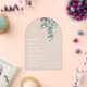 This elegant minimalist contemporary arched wedding invitation features watercolor painted eucalyptus leaves on a green transparent background.