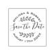 Create an elegant touch with this personalized Save the Date rubber stamp with circular lettering and hand-drawn leaves wreath. Please note, you may need to adjust the information you enter by adding or deleting some characters or spaces, to make the text properly aligned.