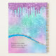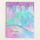 Personnalisez avec le nom gris, l'année et le monogramme blanc sur turquoise, bleu et violet arrière - plan Iridescente avec des gouttes de Parties scintillant violet. Cliquez sur "Personnaliser" pour modifier les couleurs et les styles de type.