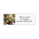Étiquettes d'adresse de retour personnalisées. Une jolie dame se reposant dans sa chaise Papasan confortable lisant un livre, buvant du café avec un mignon chat noir et blanc qui dort sur ses genoux.