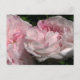 Leda is an antique Damask rose dating from the early 1800's. The petals are many and vary in colour from blossom to blossom. Creamy pink and often tinged with darker pink, she is also called the Autumn Damask or Painted Damask. This postcard features two blushing pink scented flowers.