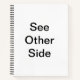 On the front of the notebook is text saying, "See other side". On the back is, "! Left Handed Genius." It's a fun joke that will leave people laughing... and maybe confirming your genius by getting them to fall for the joke.