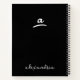 Keep your notes organized in style with this left-handed personalized spiral notebook. The notebook features a unique modern monogram and the name below in the lower thirds in complementary script, all in white on a black background. A sleek and stylish design, This notebook is perfect for personal use or as a gift for someone special. The spiral is on the right for left-handed convenience.