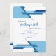 A trendy, abstract invitation with horizontal tabs in shades of blue against a crisp, white background. (<a href='https://www.freepik.com/free-vector/modern-abstract-blue-technology-background_1695874.htm'>Designed by Freepik</a>). <br/><br/>The card is easy to customize with your wording, font, font colour and choice of six paper types.<br/><br/>Not exactly what you're looking for? All our products can be custom designed to meet your needs at no extra charge.<br/><br/>Simply contact us at askcottonlamb@gmail.com<br/><br/>Coordinating products available: