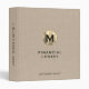 This simple yet stylish binder features a modern design with a brushed metallic gold monogram emblem on a beige linen print background. Personalize with your name or custom text of your choice using the fields provided. This binder is perfect for financial legacy planning, funeral and estate planning, family emergency documents, and more. With its sleek and modern design, this binder is not only functional but also aesthetically pleasing.