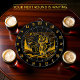 1. Introducing an exquisite dart board that transcends the ordinary, designed to elevate any man cave or tourist attraction sales outlet into a realm of sophistication and whimsy. This stunning piece features a striking gold and black design that captures the eye and ignites the imagination. At the heart of this unique dart board lies a captivating depiction of the legendary yeti, also known as Bigfoot or Sasquatch, rendered in luxurious gold. The yeti is playfully engaged in a game of golf, set against a picturesque backdrop of majestic pine trees that frame the scene, creating an enchanting forest mountain area. The rich black surface of the dart board serves as a perfect contrast, allowing the golden hues to shimmer and shine, making it not just a game accessory but a statement piece of art.