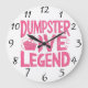 A vibrant pink poster with bold white text that reads Dumpster Dive Legend, emphasizing a passion for scavenging discarded goods in a fun and empowering way.